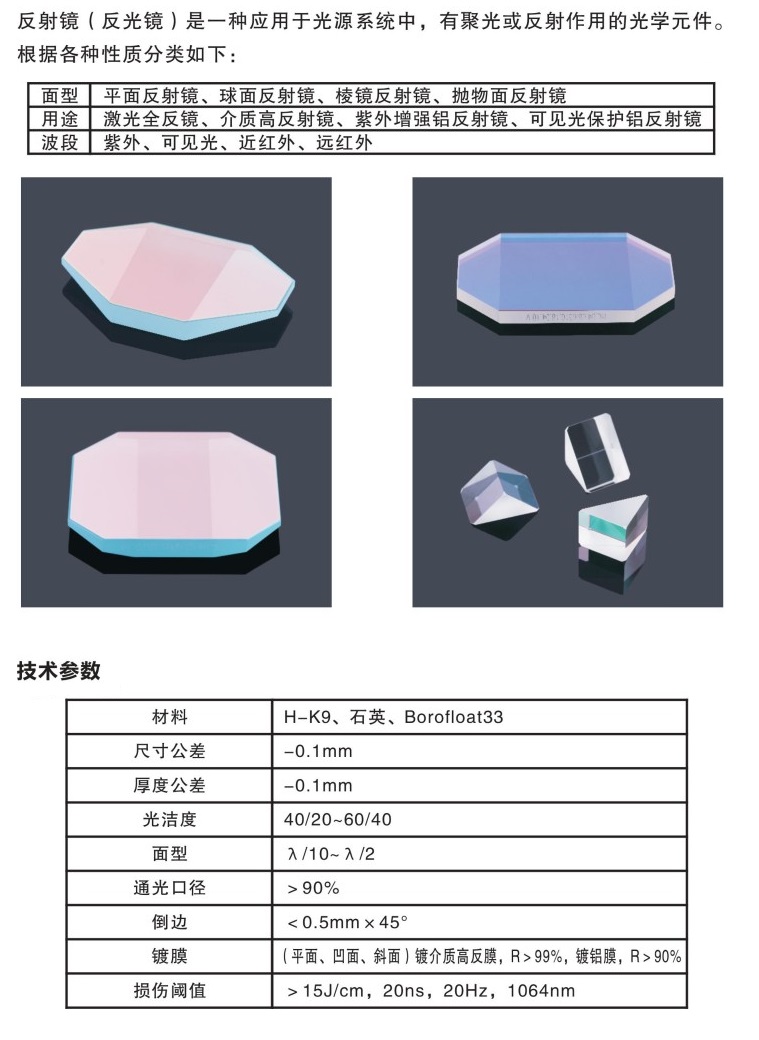 • 45° K9八角激光反射鏡1064nm