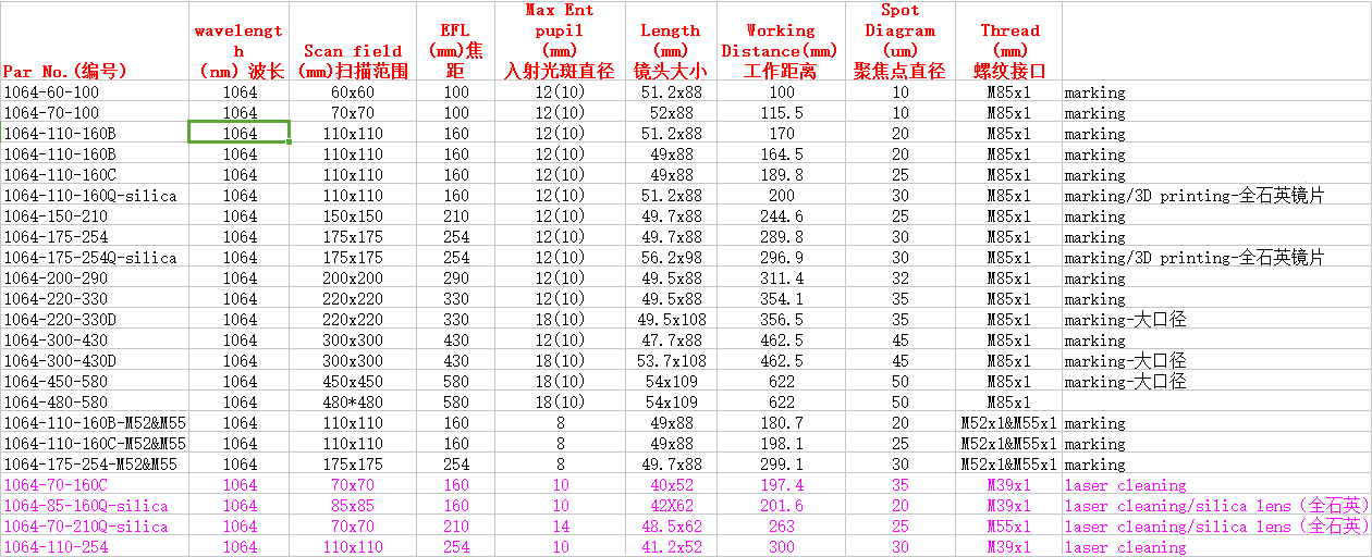 光纖激光場鏡功能上屬於聚焦鏡,其與普通聚焦鏡差別是其具有F*Θ的特性,加工位置可以根據F*Θ進行計算,同時在大視場範圍內保持均勻性。