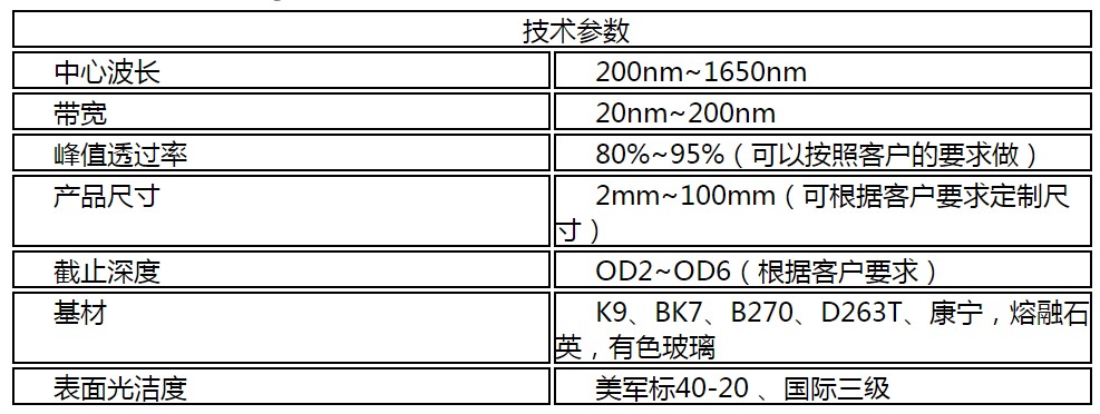 按照工作波長劃分可以將其分為:紫外帶通濾光片,可見帶通濾光片,紅外帶通濾光片。